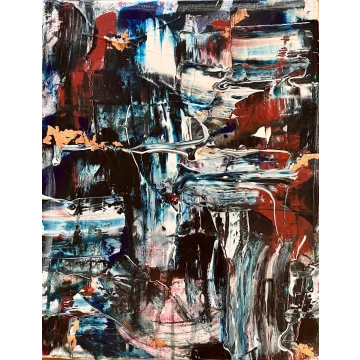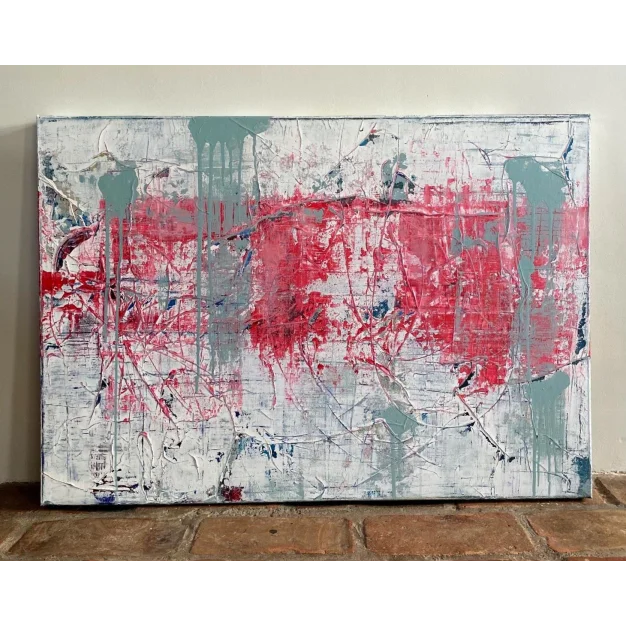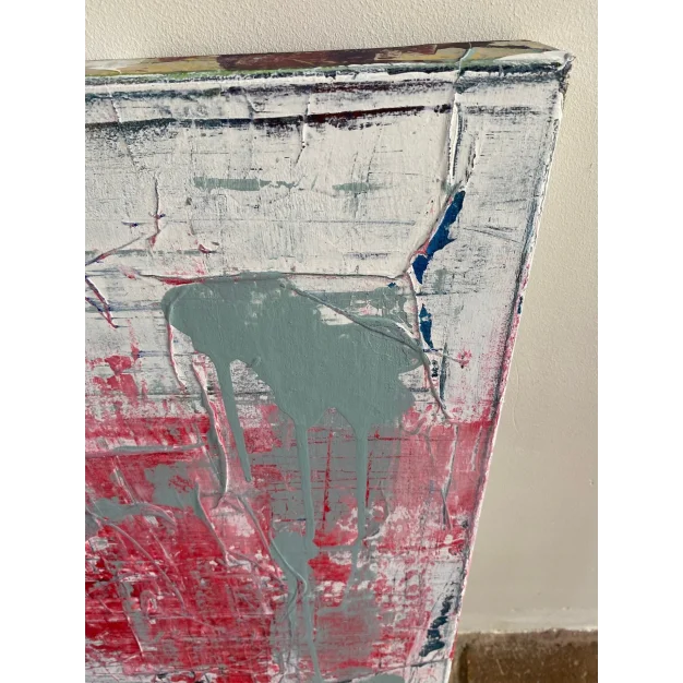 An intuitive abstract painting where layered structures, movement, and color come together in balance. The work unfolds slowly and leaves room for personal interpretation.