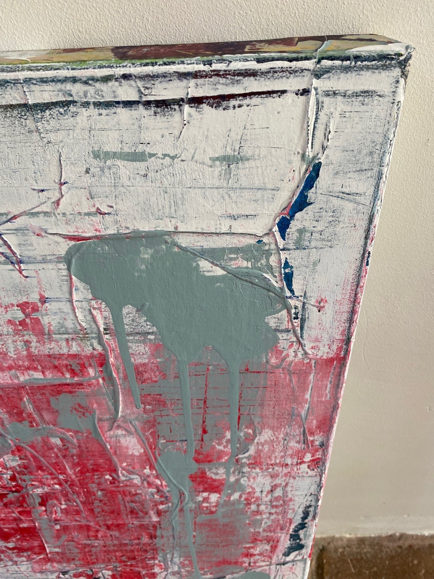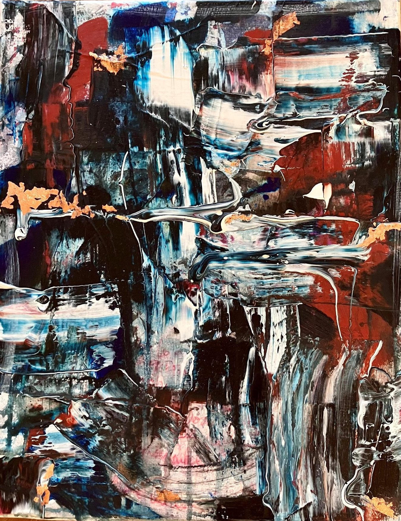 An intuitive abstract painting where layered structures, movement, and color come together in balance. The work unfolds slowly and leaves room for personal interpretation.
