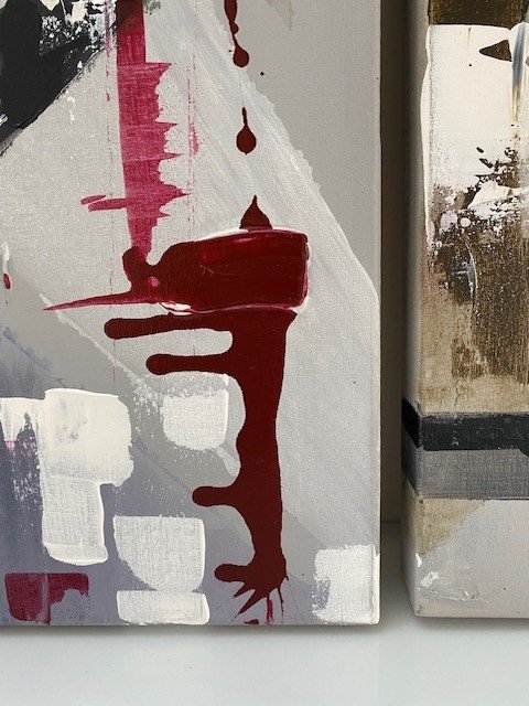 Het werk bestaat uit drie doeken van 80 cm X 30 cm